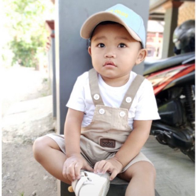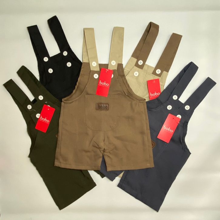 SETELAN BAYI BAHAN CHINO OVERALL PENDEK ANAK 1 - 4 TAHUN BAHAN TEBAL PREMIUM