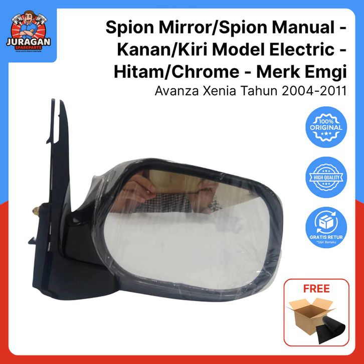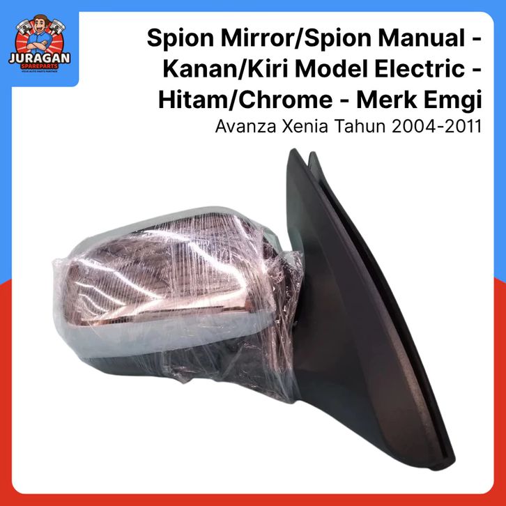 Spion Mirror Avanza Xenia Tahun 2004 - 2011 - Kanan/Kiri - Manual Model Electric - Hitam / Chrome - Emgi