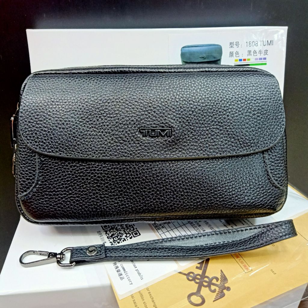 HANDBAG KULIT KUNCI KODE T1808 BLACK CLUTCH TAS TANGAN KULIT ORIGINAL TUMI
