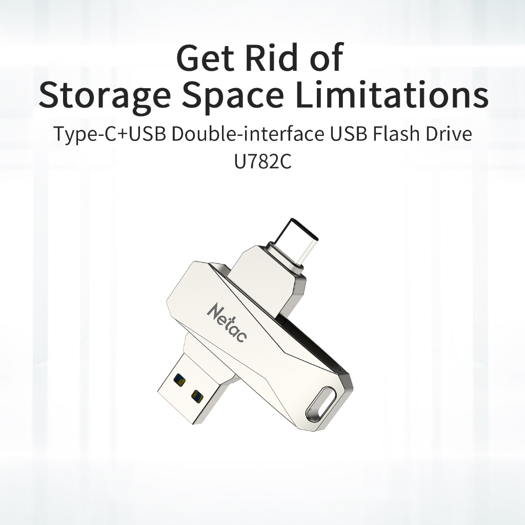 Netac OTG Flashdisk U782C USB 3.2 + Type-C Dual Flash Drive 32GB/64GB/128GB/256GB Flash Disk Up to 110MB/s