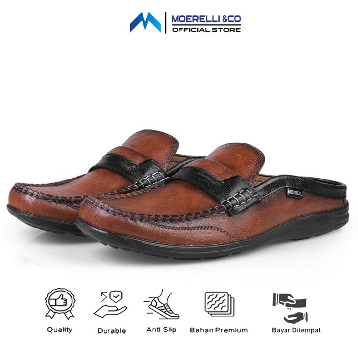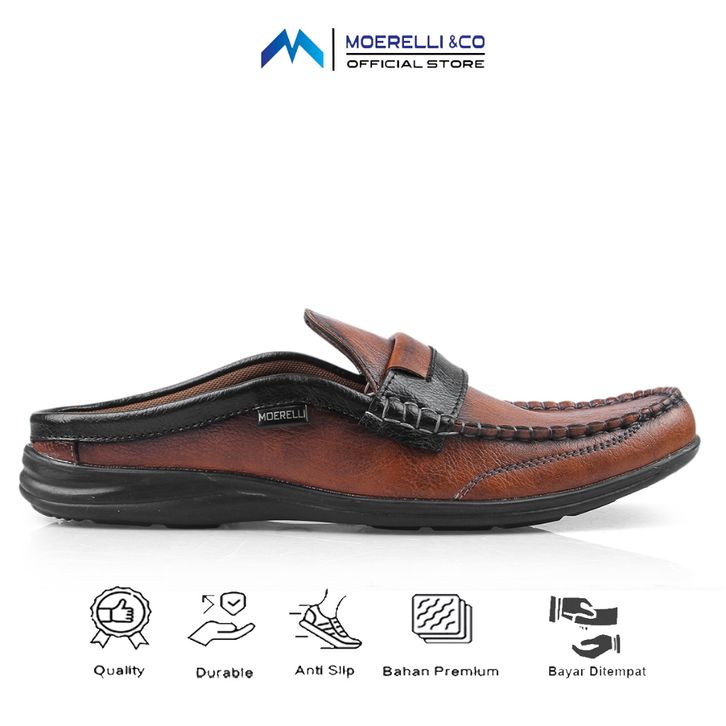 Sepatu Formal Selop Pria Casual Original MOERELLI &CO M7153 Arcene Tan | Sandal Bustong Laki laki Sendal Casual Pansus