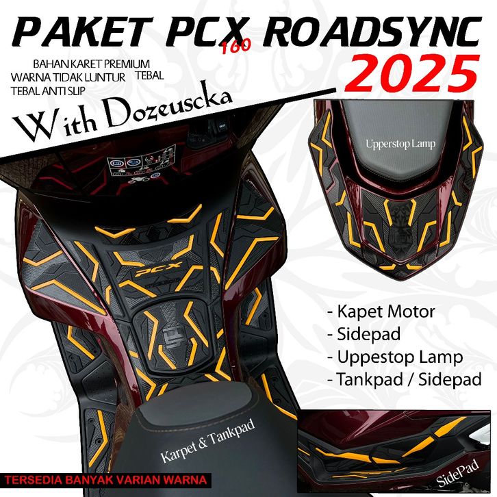 Karpet Motor Dozeuscka Paket PCX 160 RoadSycn 2025 Karpet Tankpad UpperStoplamp sidepade Bahan Karet Premium Tebal Anti