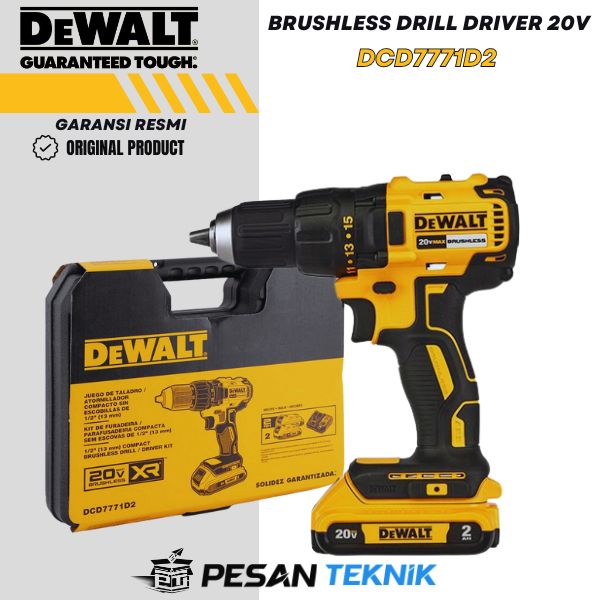 Dewalt Brushless Drill Driver Mesin Bor Baterai 20V DCD7771D2 DCD7771