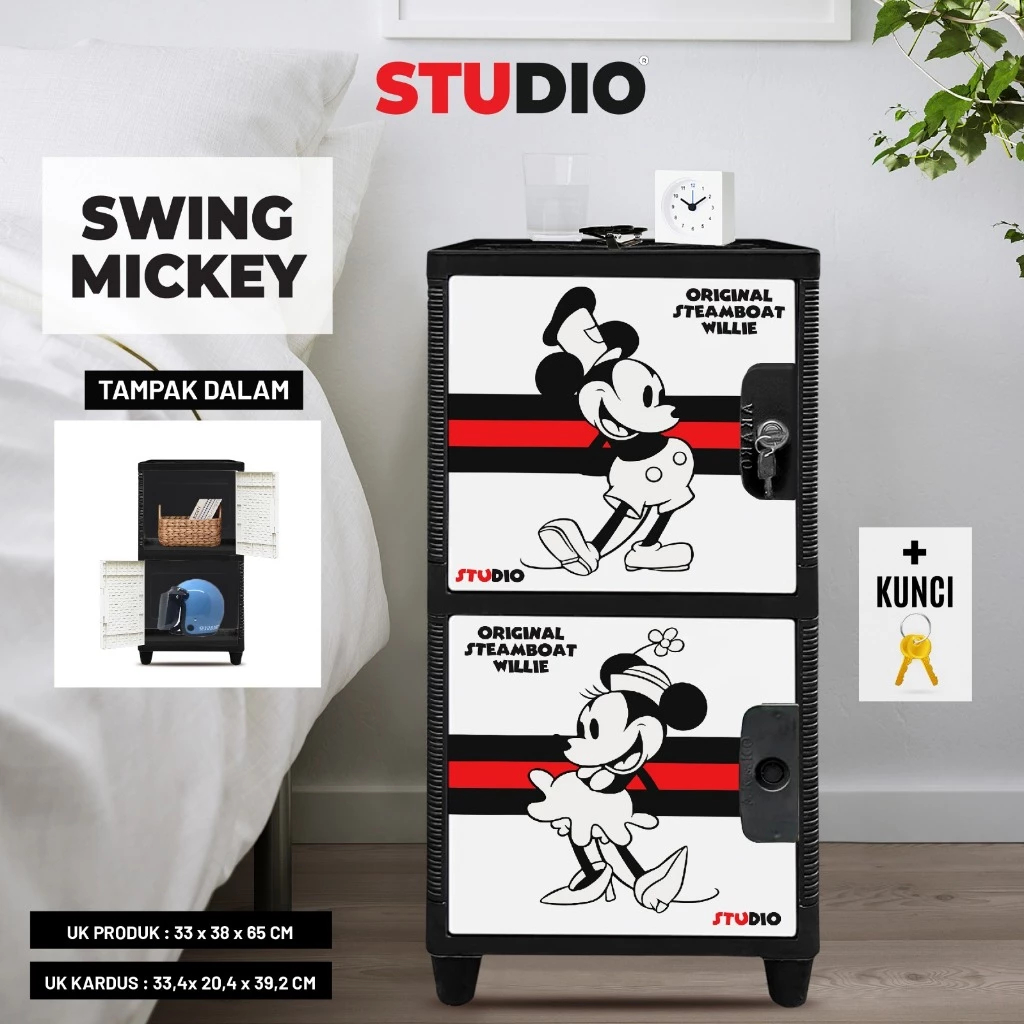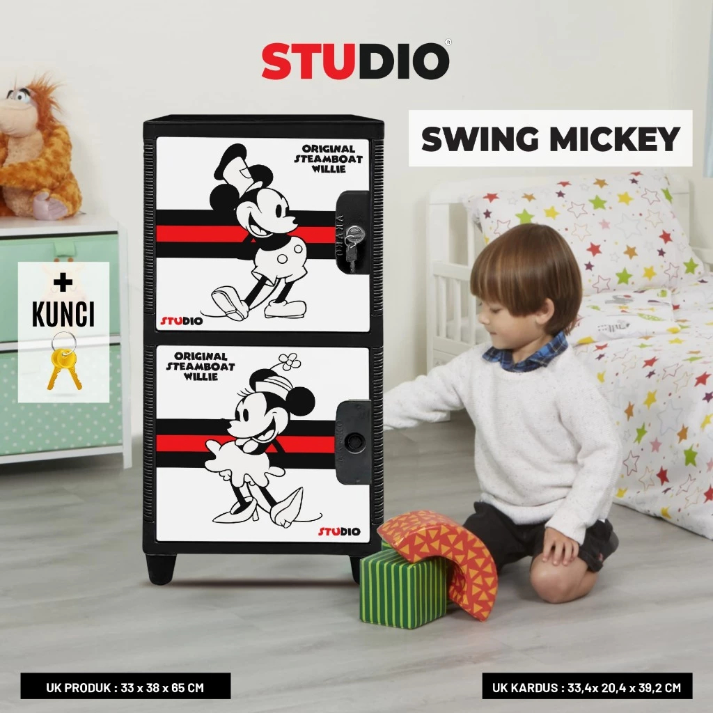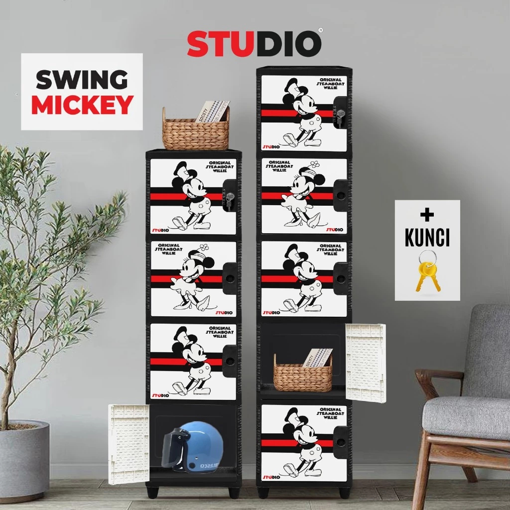 Lemari Pakaian Plastik Jumbo Swing Mickey Mouse 1 Pintu + Kunci Printing Susun 2, 3, 4 & 5