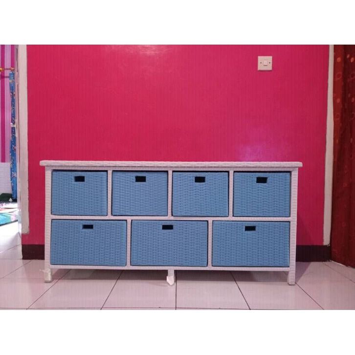 Lemari Rotan Sintetis Laci 7 Samping Meja Tv Rak Buku Susun Lemari Plastik Lemari Kabinet Rak TV Rotan Sintetis Murah