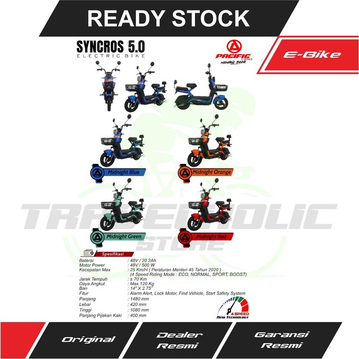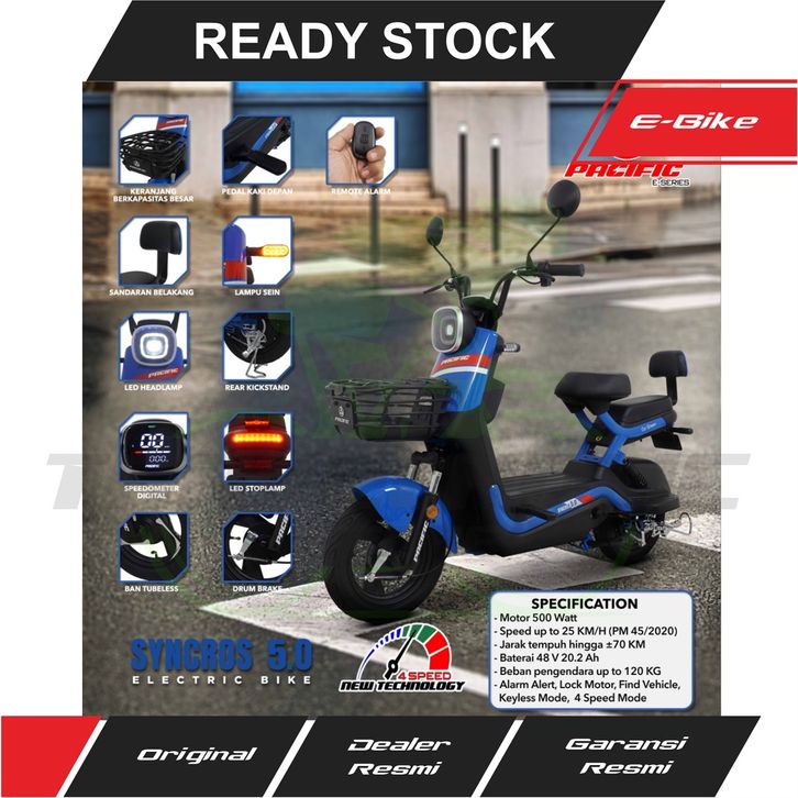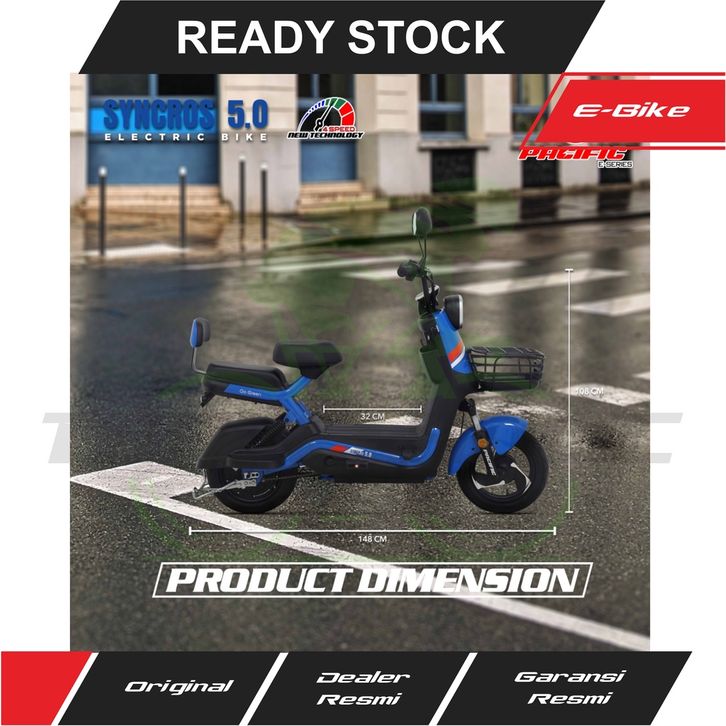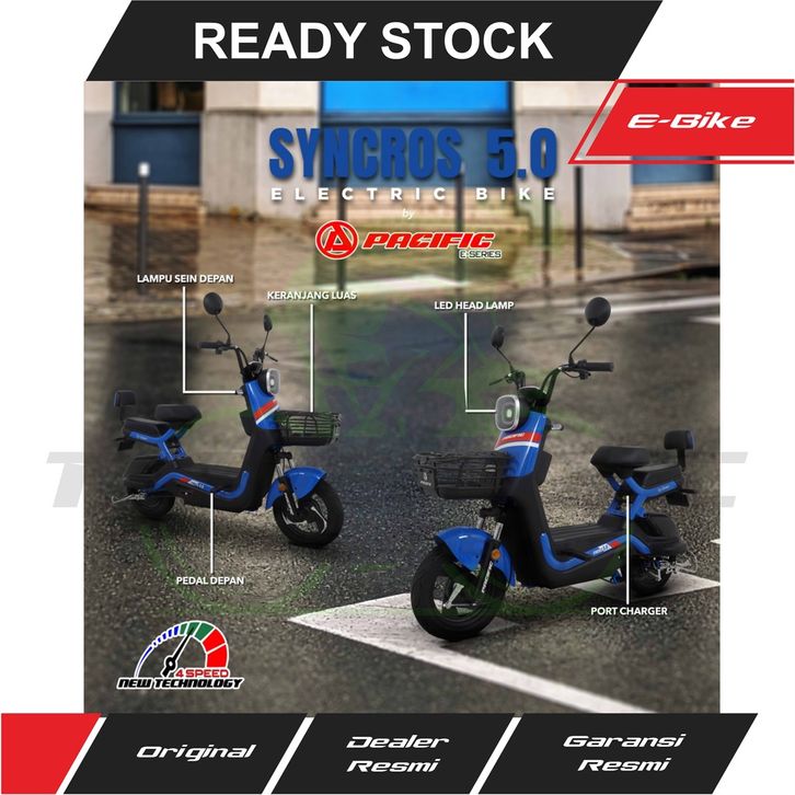 SEPEDA LISTRIK MURAH E-BIKE POWER 500 WATT 4 Speed SYNCROS 5.0 - PACIFIC