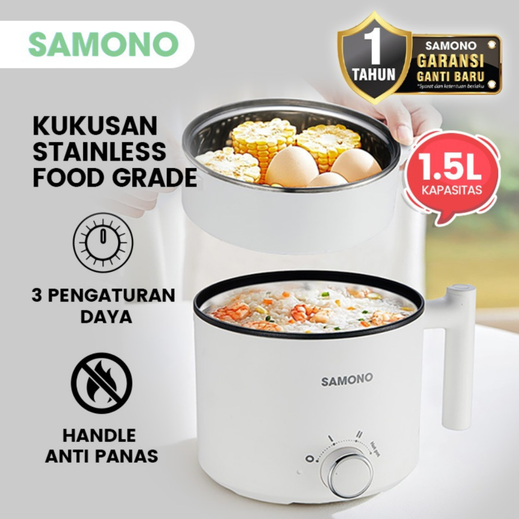 SAMONO Panci Listrik SWDG04S 15L 150W Low Watt Stainless Food Grade Anti Lengket 3 Level Daya Garansi 1 Tahun Putih