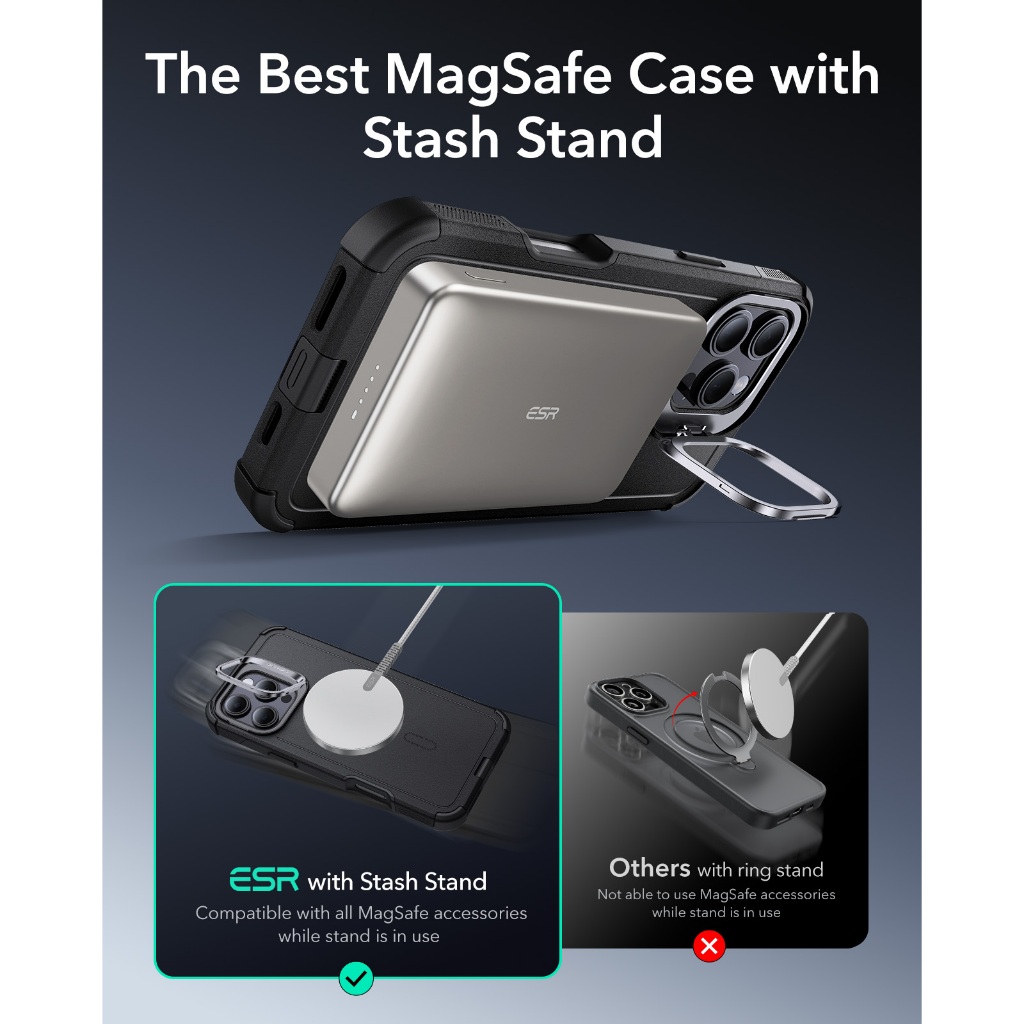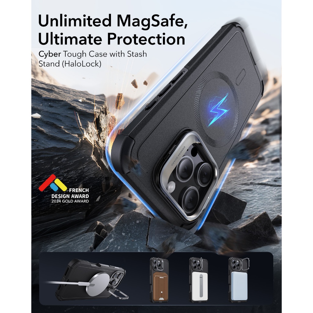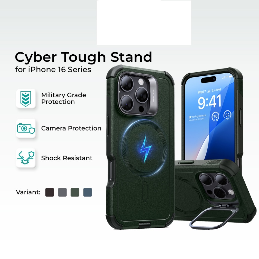 Case Cyber Tough with Stash Stand HaloLock iPhone 16 Plus/Pro/ProMax Case Casing Hardcase Handphone Transparan Magsafe