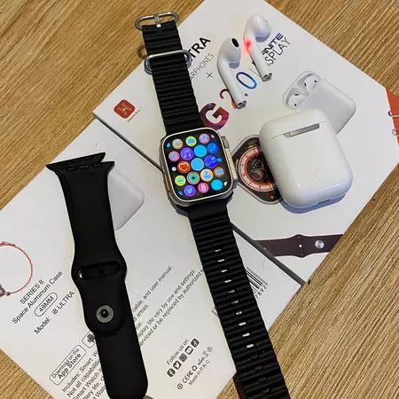 Terbaru Smartwatch i8 Ultra Watch 8 Free 2 Tali Plus Earphone TWS Full Layar Support Android Ios