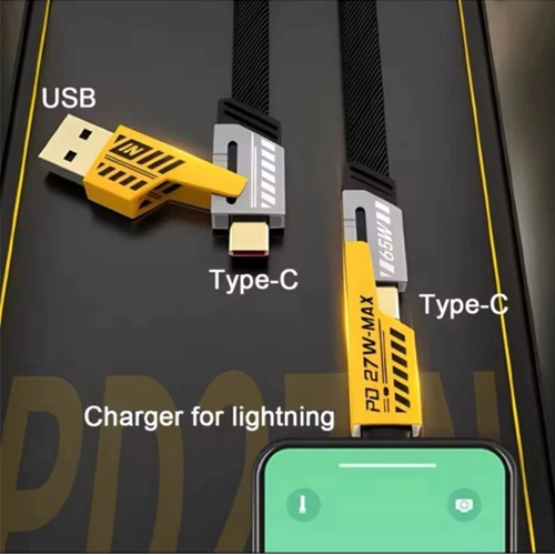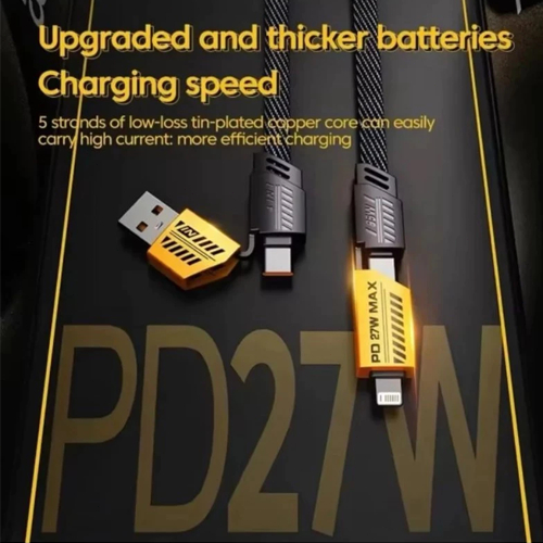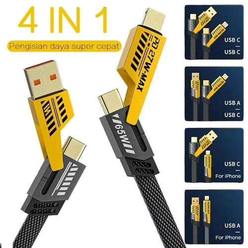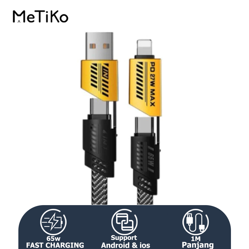 METIKO KABEL DATA 4 IN 1 CONVERTIBLE METAL FAST DATA CABLE 27W+65W TYPE C DAN IPHONE CABLE