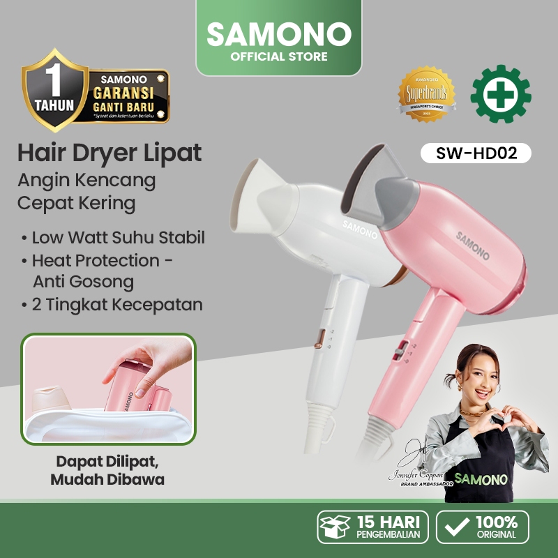 SAMONO Hair Dryer Lipat Compact Low Watt Pengering Rambut Travel Garansi 1 Tahun SW-HD02