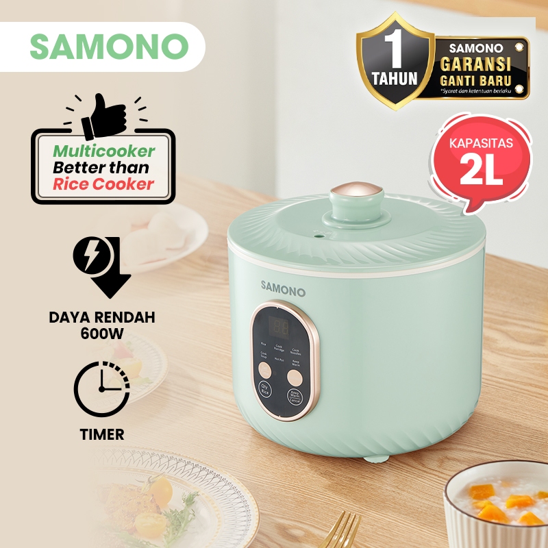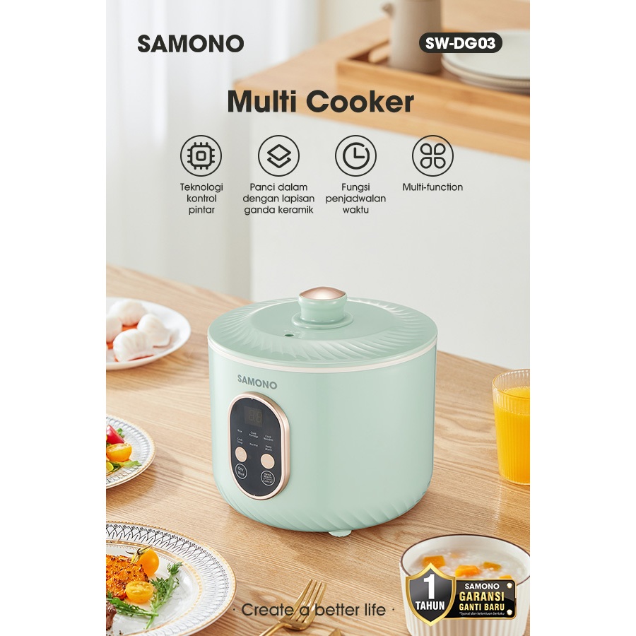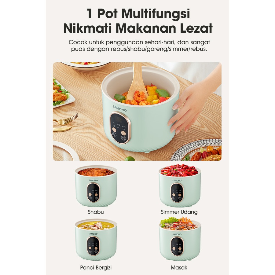 SAMONO Panci Listrik Serbaguna Multi Cooker Kapsitas 2L Lapisan Keramik SW-DG03