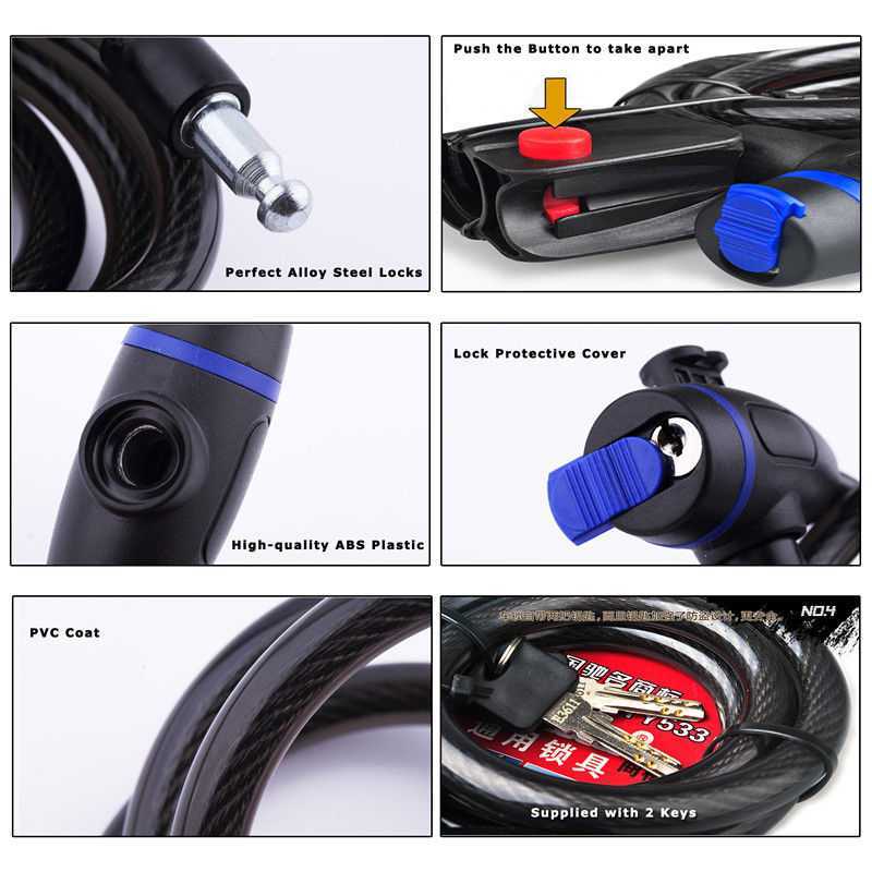 Kunci Gembok Sepeda Anti Maling Cable Lock Stainless Steel TY588YZ TaffGUARD Black
