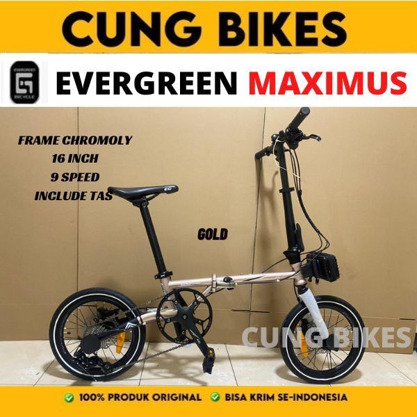 Sepeda Lipat Evergreen Chromoly Maximus 16 Inch Rem Hydraulic 9 Speed