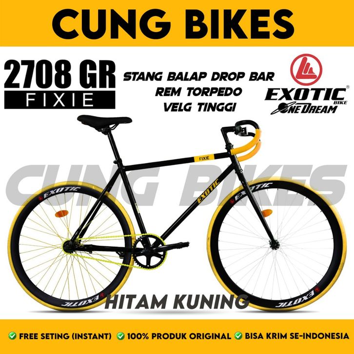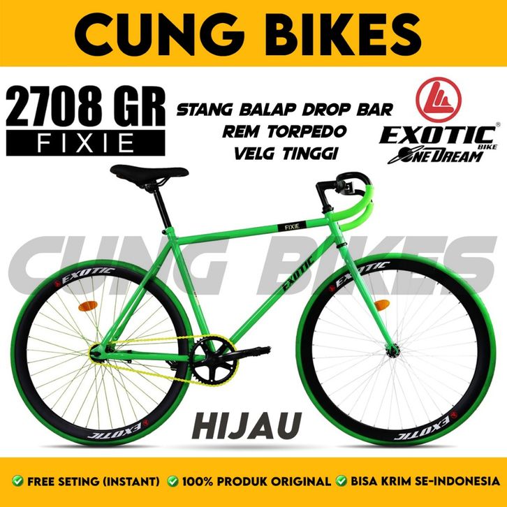 Sepeda Fixie Fullbike EXOTIC 2708GR 700c Stang Balap Dropbar Rem Torpedo