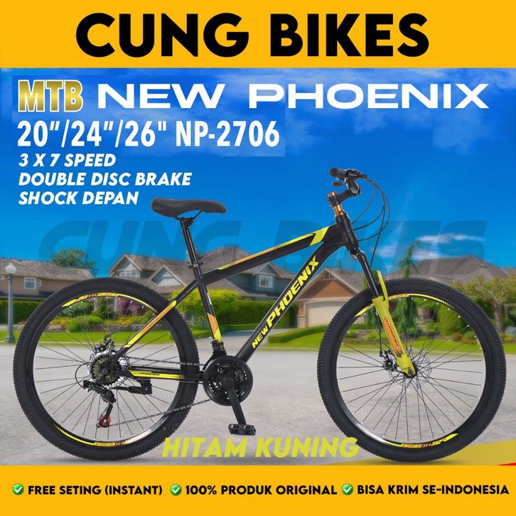 Sepeda Gunung MTB Phoenix 2706 Ukuran 20 24 26 Inch Disc Brake Depan Belakang
