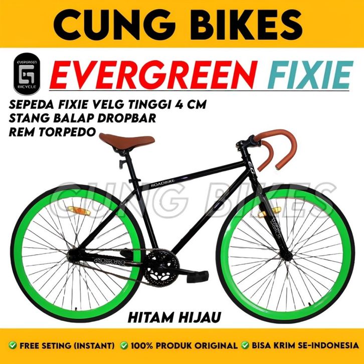 Sepeda Fixie Fullbike Evergreen 700c Stang Balap Dropbar Rem Torpedo