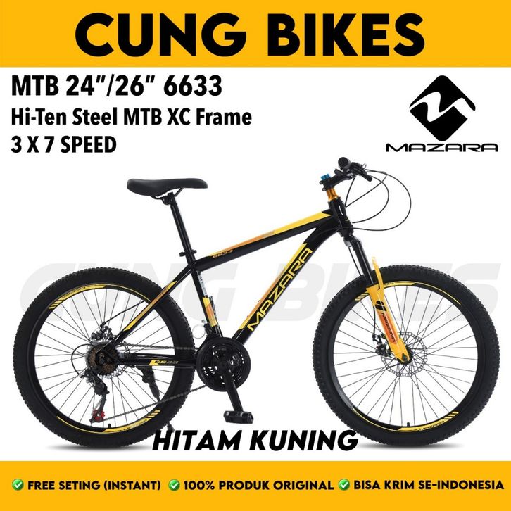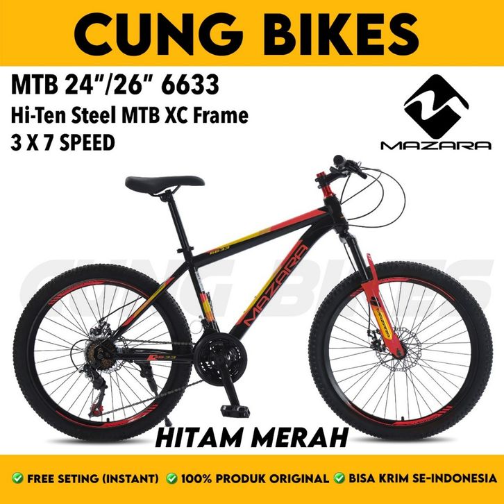 Sepeda Gunung MTB MAZARA 6633 Ukuran 24 26 Inch Rem Cakram 21 Speed Shockbreaker Depan