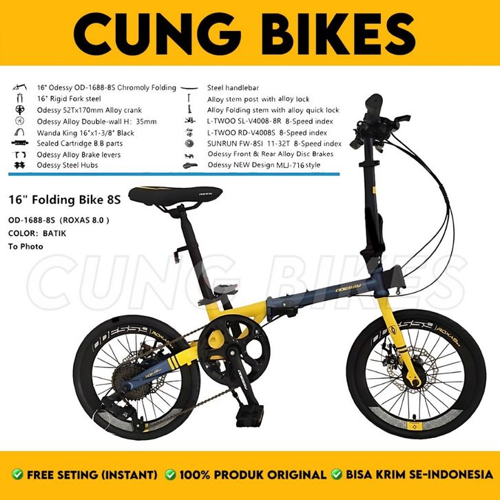 Sepeda Lipat Odessy Roxas 8.0 Ukuran 16 Inch Rem Cakram