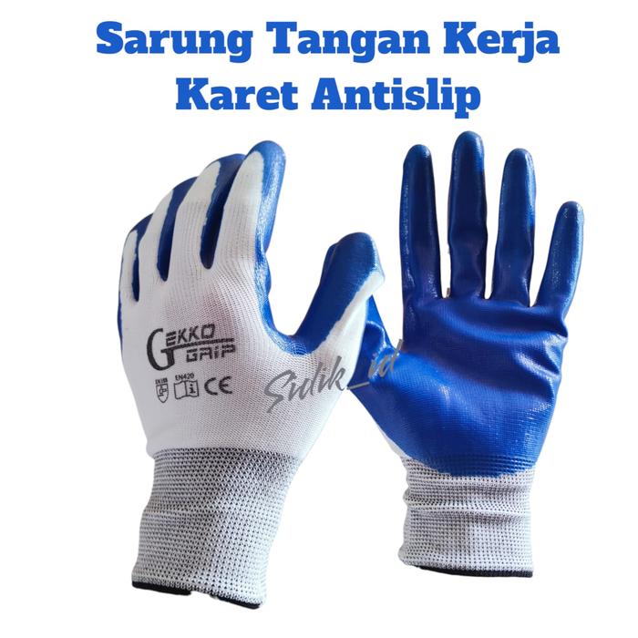 3 Pasang Sarung Tangan Kerja Karet Telapak Antislip Sarung Tangan Berkebun Pria Wanita Dewasa - Biru Putih 3 Pasang