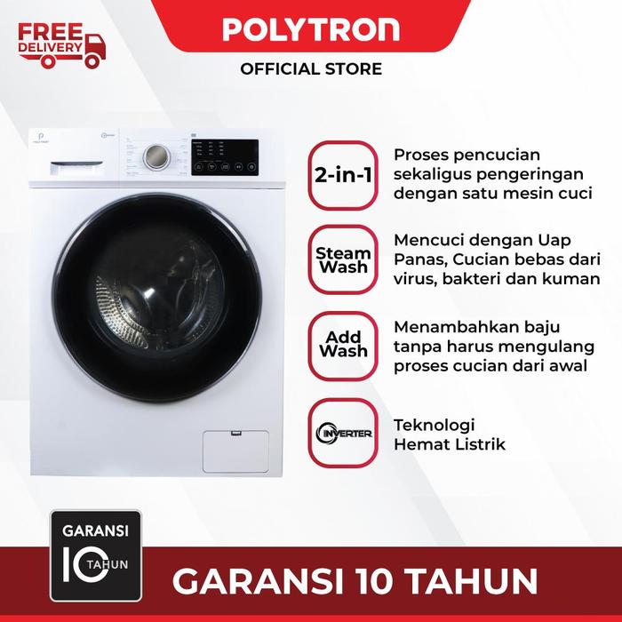 POLYTRON Mesin Cuci Front Loading 100% Kering Inverter 11 KG PFL 1105 - putih
