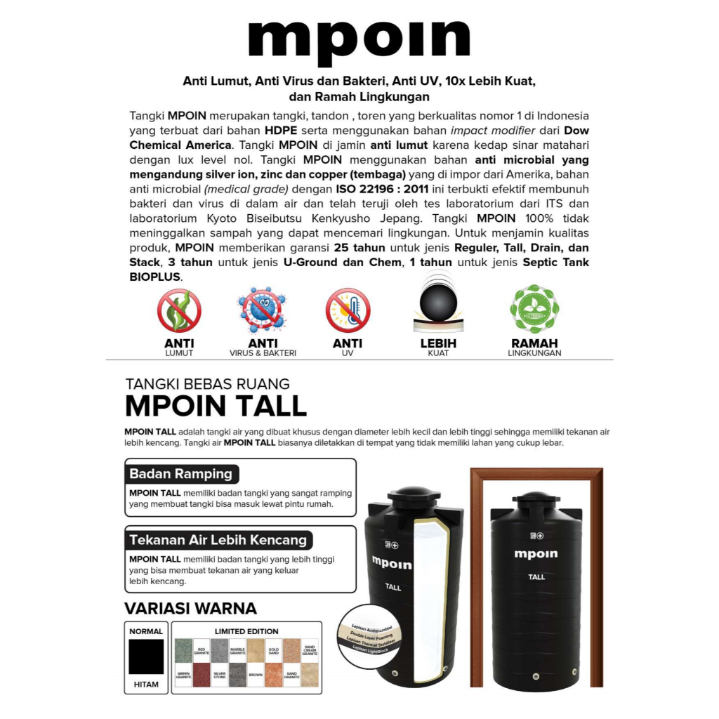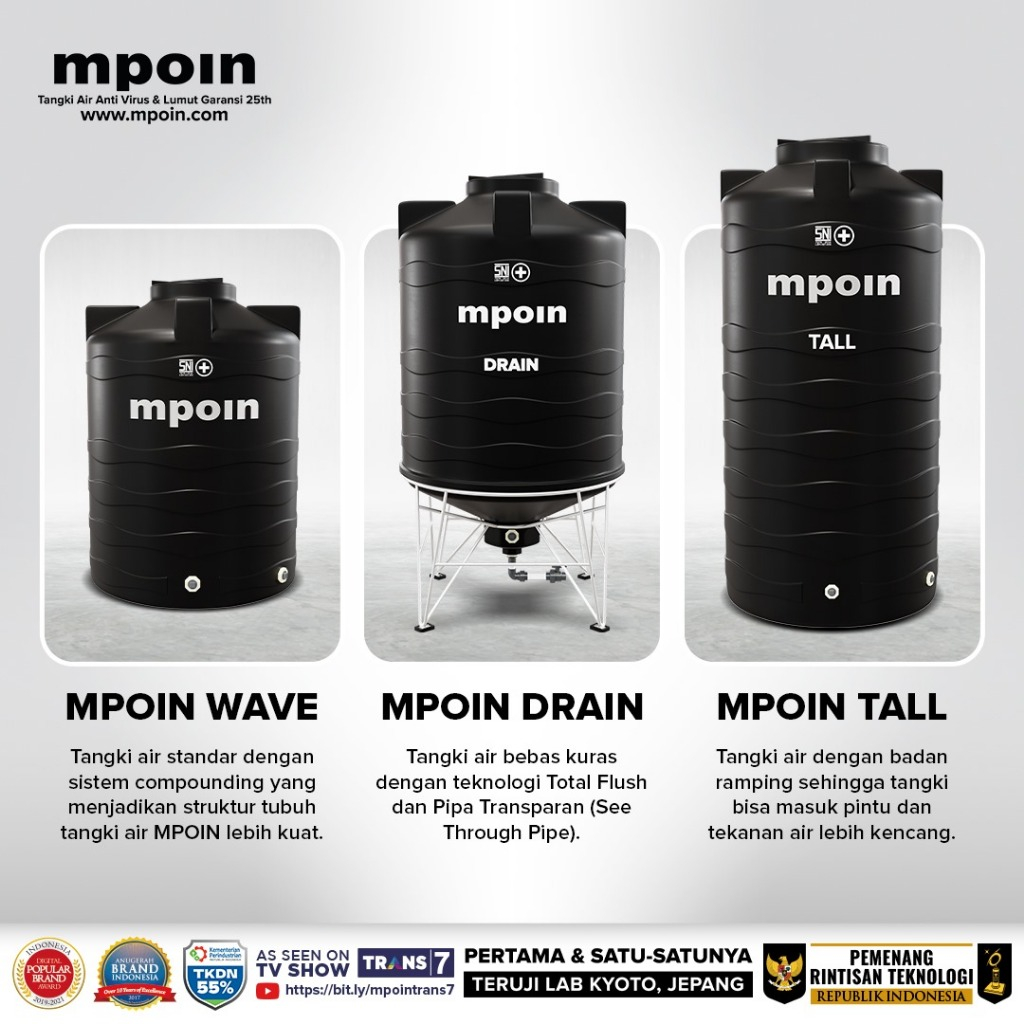 Tandon Toren Tangki Air MPOIN 400 Liter s/d 1200 liter - GARANSI 50 TAHUN - Anti Lumut & Food Grade