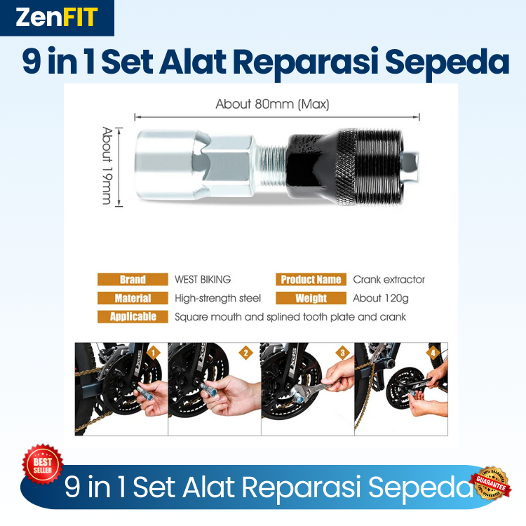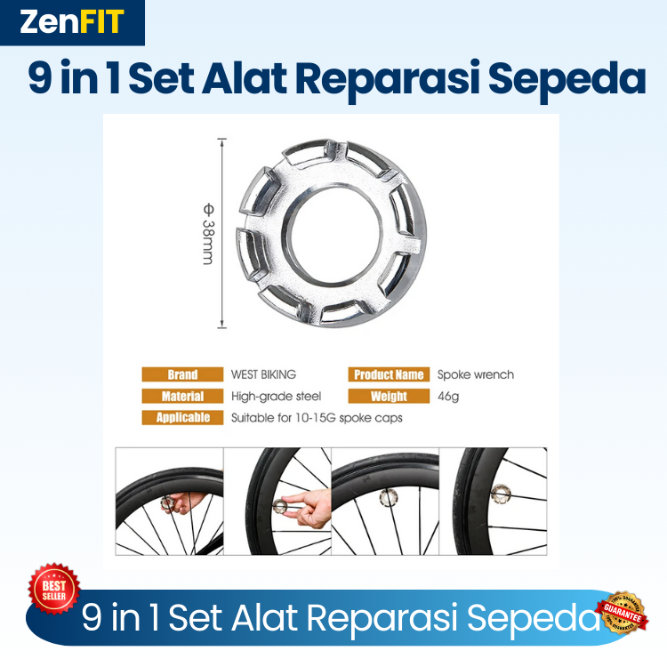 Alat Kunci Sepeda 9 in 1 Alat Reparasi Sepeda Crank Set Kunci Sprocket Sepeda Kunci Sepeda alat reparasi tambal ban sepe