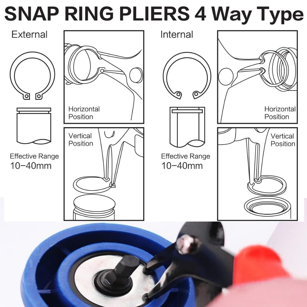 JLD Tang Snap Ring Pliers 2-In-1 Lurus Buka Tutup Buka Tutup 2 Fungsi 4 Way Type Tang Circlip