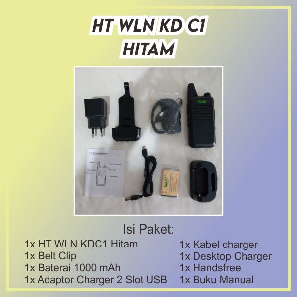HT WLN KD C1 HITAM WALKIE TALKIE KD-C1 KDC1 UHF RADIO WLAN KLIP BESAR T1 KOMUNIKASI C 1 TALKY