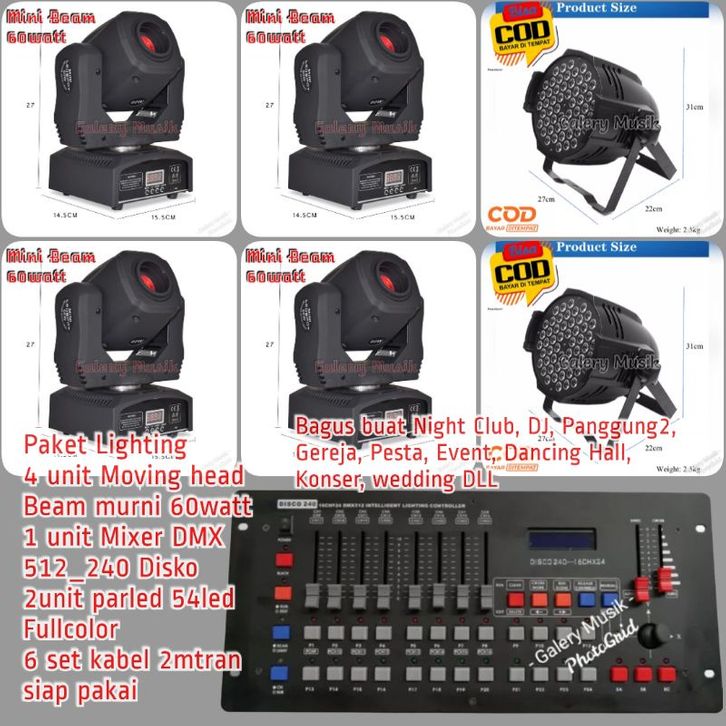 Paket Lighting 4 unit Moving head Beam murni 60watt + power 100watt