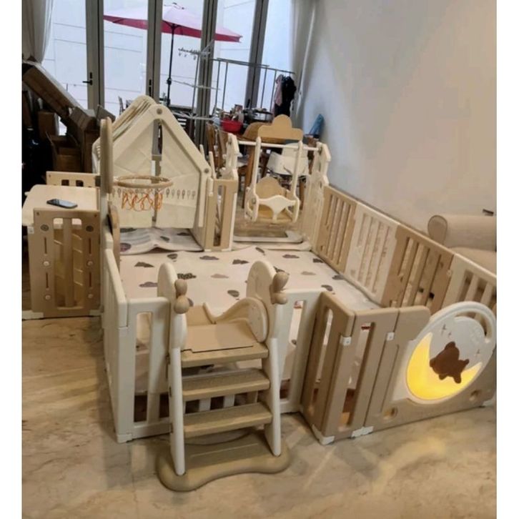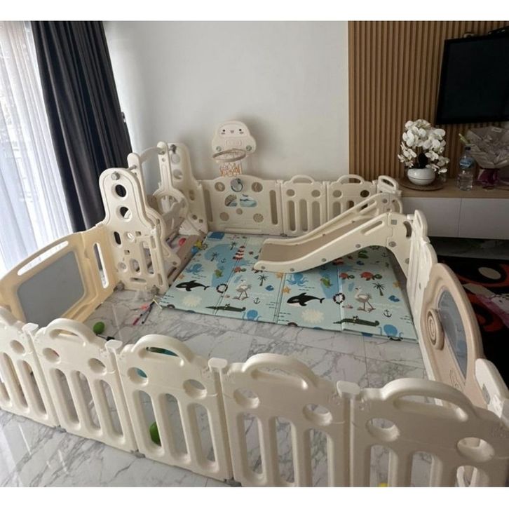 Baby Playpen BONUS BOLA MANDI JUMBO PAGAR MAINAN ANAK 3in1 AYUNAN RING BASKET PEMBATAS PLUS KARPET ALAS PLAYGROUND AREN