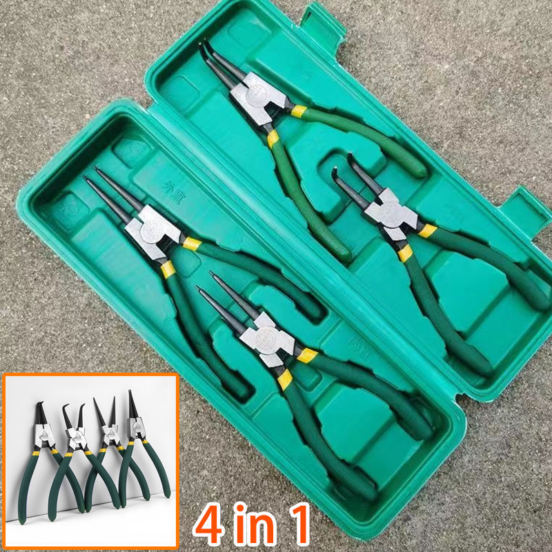 4 IN 1 Set Tang Circlip Bengkok Tang Circlip Tang Snap Ring Set 7" Set Cincin Snap Perkakas-Tang Circlip Pliers Set