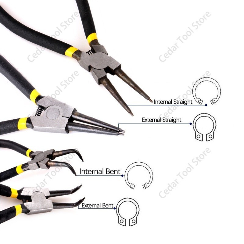 4 IN 1 7 Inch Set Tang Circlip Bengkok Tang Circlip tang snap ring set 7" Set Cincin Snap Perkakas-Tang Circlip Pliers s