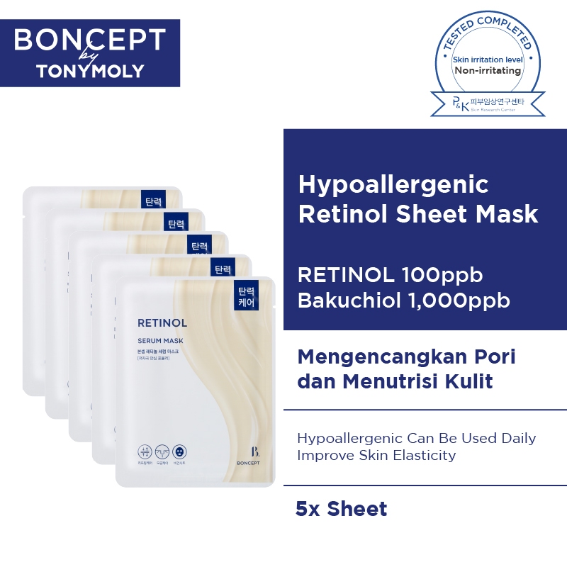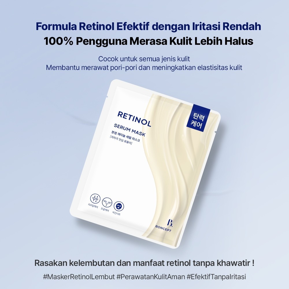 ISI 5 BONCEPT Retinol Serum Mask – Masker Lembap & Lifting, Mengandung Bakuchiol & Panthenol, Mencerahkan, Anti-Penuaan,