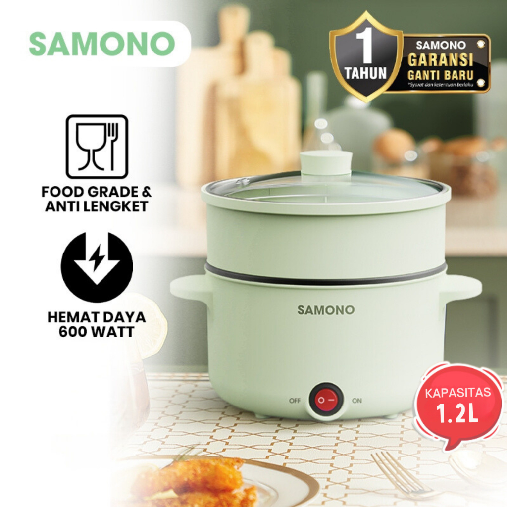 SAMONO Panci Listrik Anak Kos Multi Fungsi 1.2L Anti Lengket 600 Watt SW-DG04 Garansi 1 Tahun