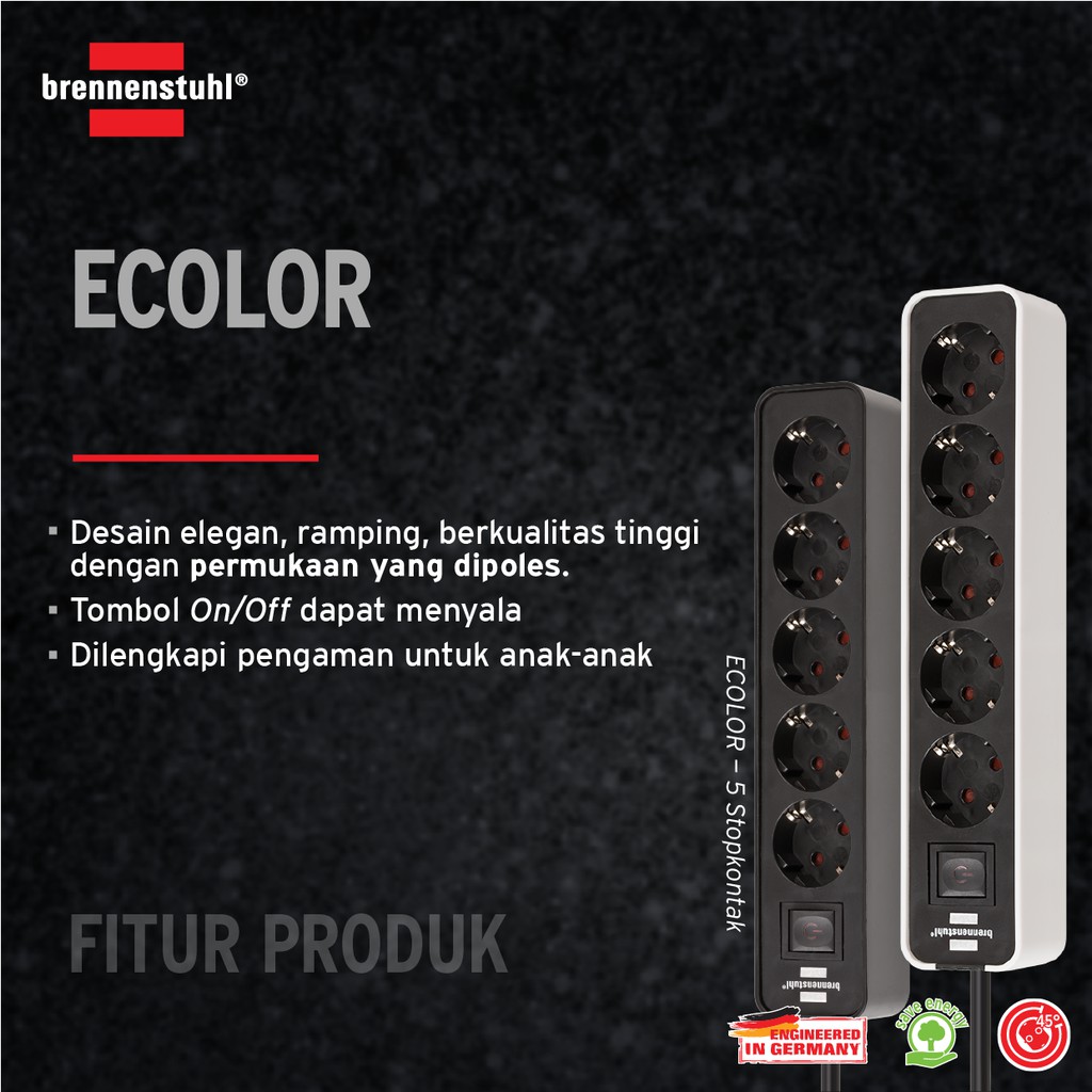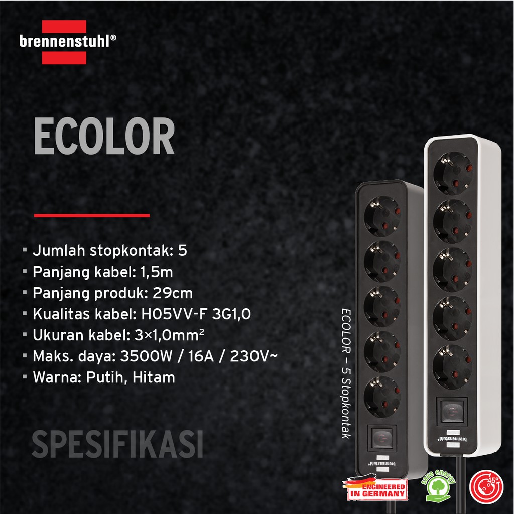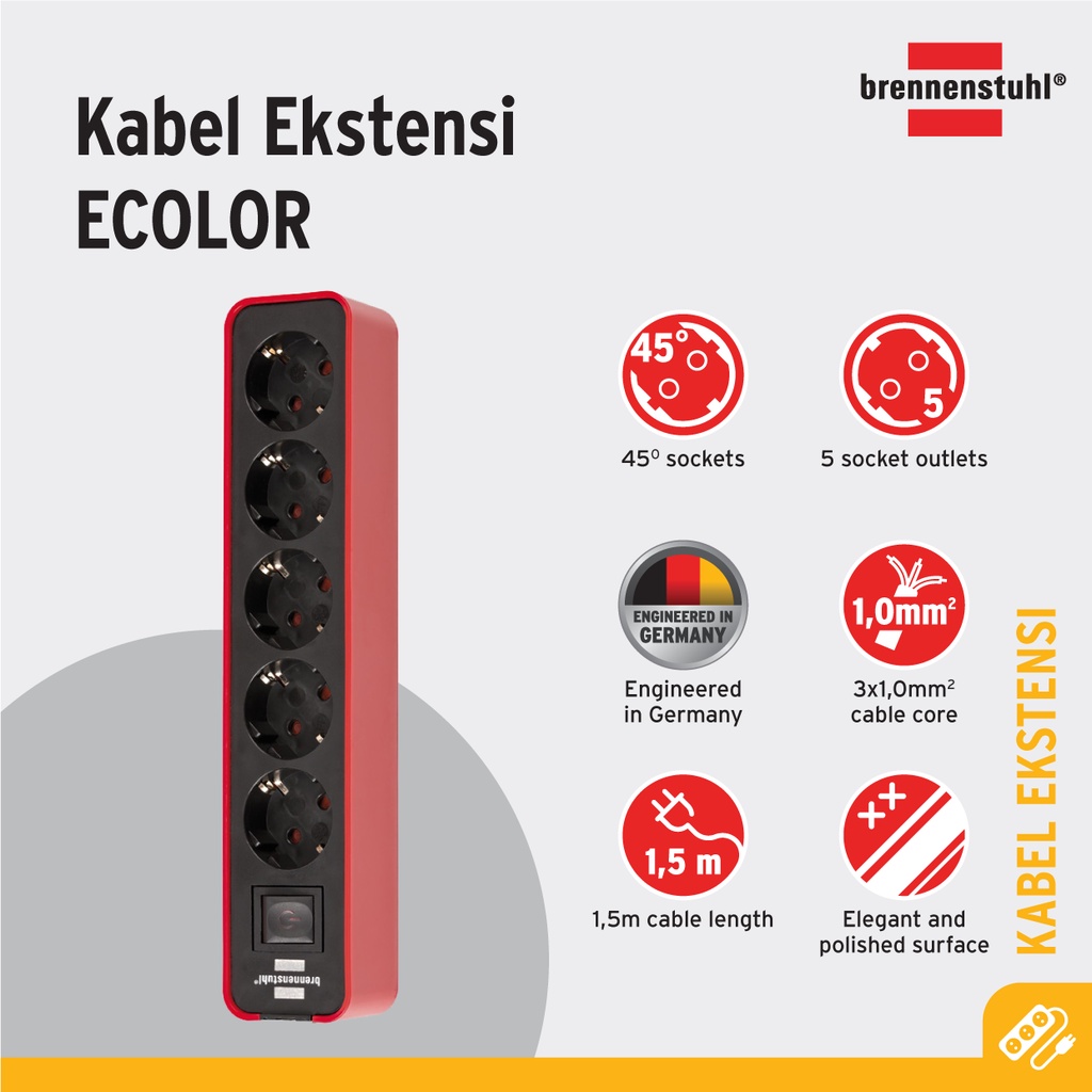 BRENNENSTUHL STOP KONTAK ECOLOR 5-SOKET DENGAN SWITCH - 1.5M