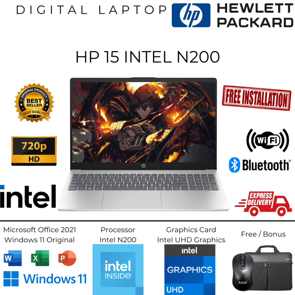 LAPTOP BARU MURAH HP 15 INTEL N200 RAM 16GB 128GB SSD 15.6 INTEL HD GRAPHICS WINDOWS 11 ORIGINAL