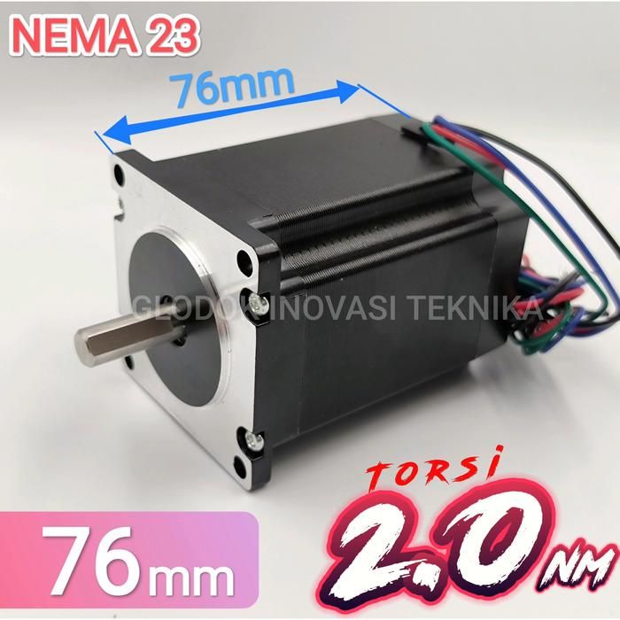 Motor stepper 57 steper NEMA 23 NEMA23 CNC Router 2 phase bipolar - 76mm - Hanya Motor Shaft 8mm