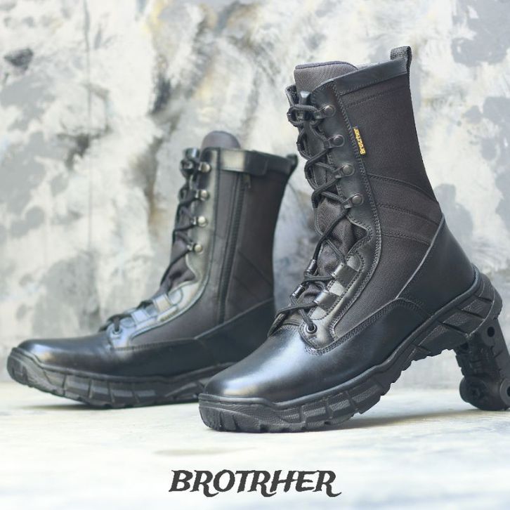 Sepatu pdl kulit kombinasi kanvas kordura anti air di sertai resleting merk brotrher type gen 6