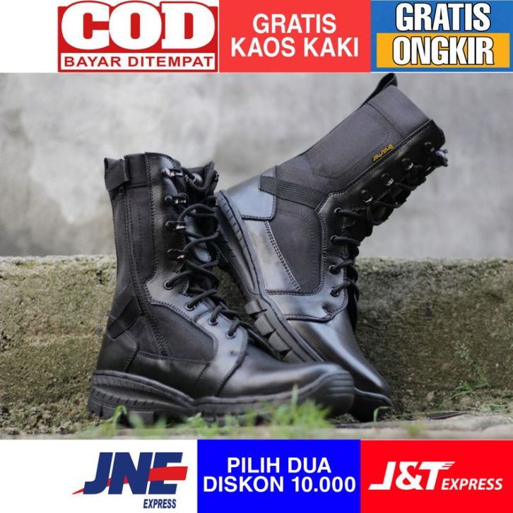 Sepatu Pdl Tni Polri Merk Brotrher Swatt Bahan Kulit Sapi & Kordura Anti air Pakai Resleting Ringan