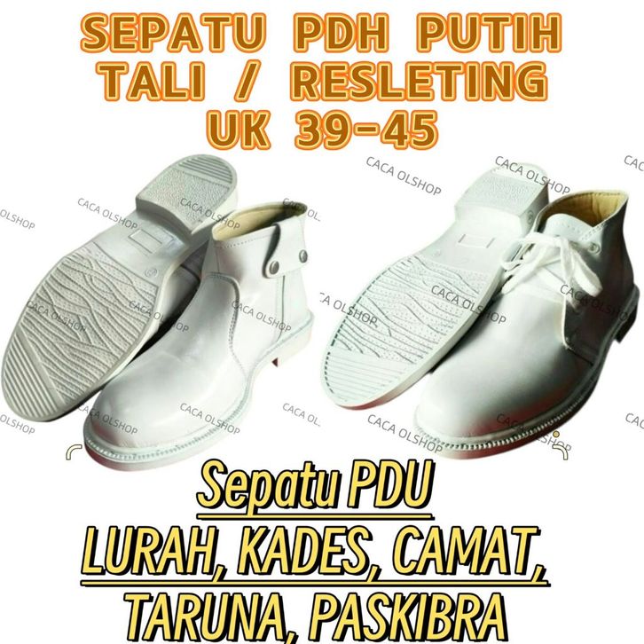 Sepatu PDH Putih Tali / Sleting PDU Lurah Kades Camat Taruna Paskibra