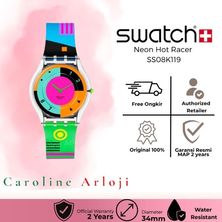 Jam tangan wanita Swatch Skin SS08K119 Neon Hot Racer