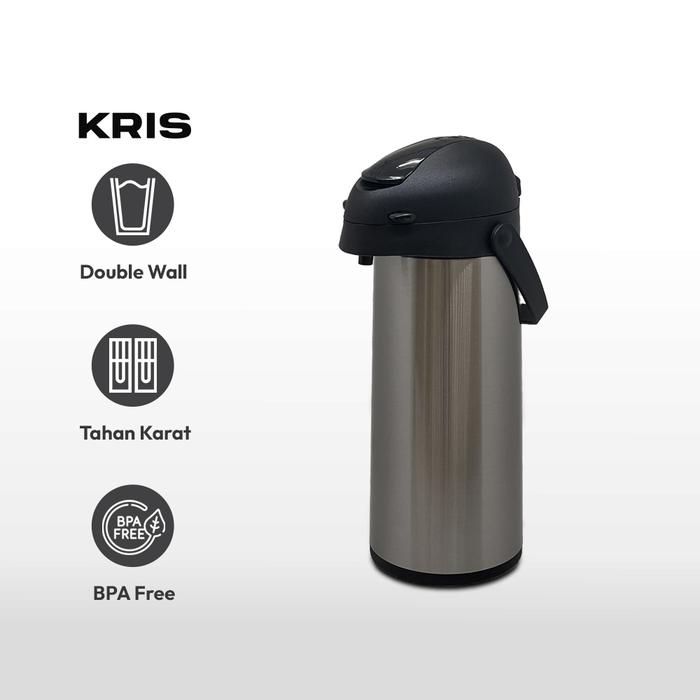AZKO Kris 1.9 ltr Teko Vacuum Flask Dengan Glass Liner Gd-19Ps Tumbler Termos Minuman Tempat Air Minum Panas Dingin Wate