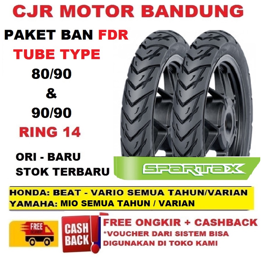 PROMO PAKET Ban Motor Vario Beat Mio FDR Spartax 80/90 & 90/90 ring 14 TUBE TYPE SEPASANG