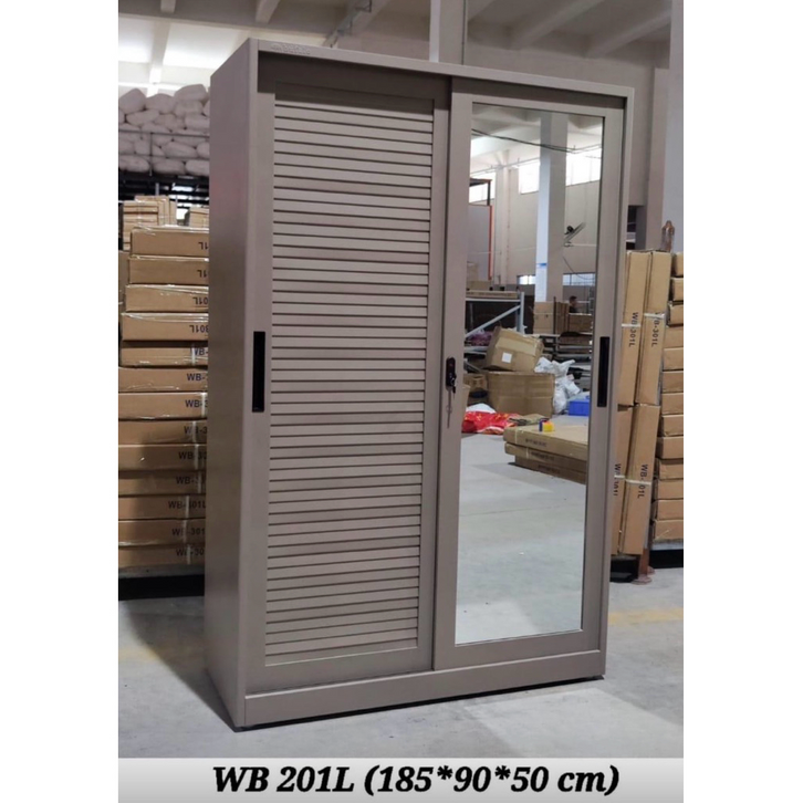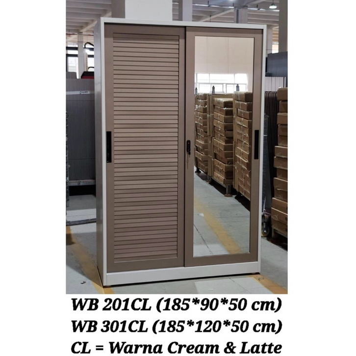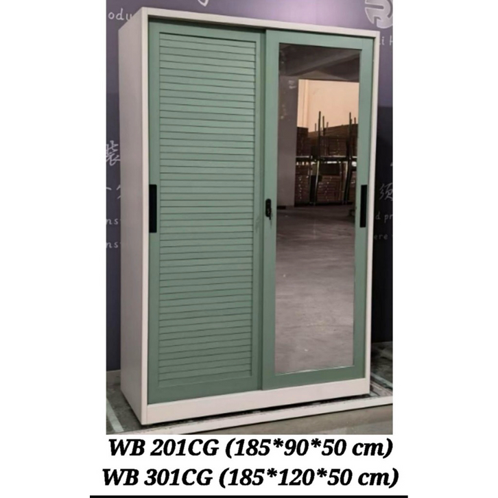 LEMARI PAKAIAN SLIDING BESI 2 PINTU JALUSI ANTI AIR JAMUR RAYAP KARAT AWET TAHAN LAMA