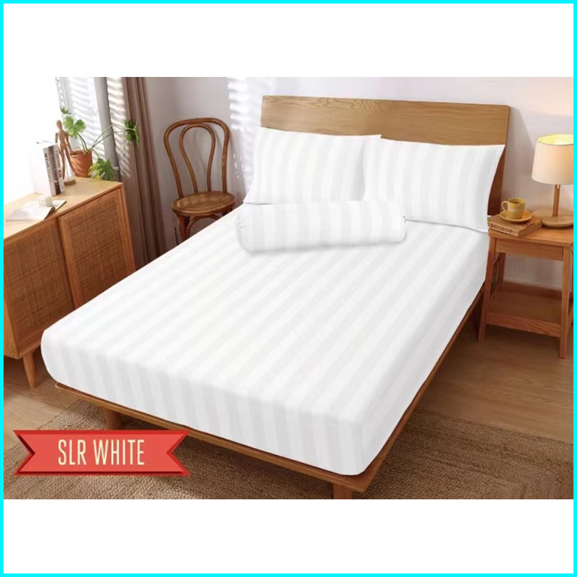 Set Sprei Hotel Karet Sudut Bahan Katun Premium Embos Salur Tinggi 20cm