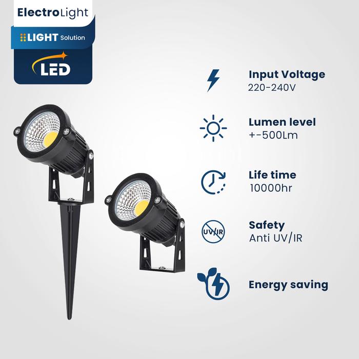 TERLARIS LAMPU SOROT TAMAN LED COB 5WATT TANCAP TEMPEL WATERPROOF OUTDOOR TERAS PLASTIK TANCAP WARM (3000K)