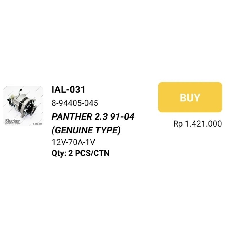 Alternator Dinamo Ampere Panther 2.3 Thn 1991 - 1993 Penther 2.3 2300 cc