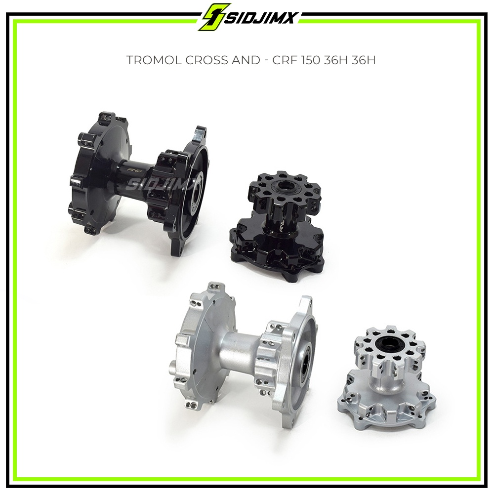 Tromol SET Depan Belakang Cross AND / FREEDAY CRF 150L 36 Hole NON DISC Hitam Silver