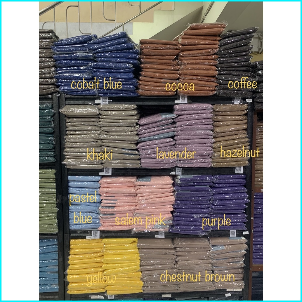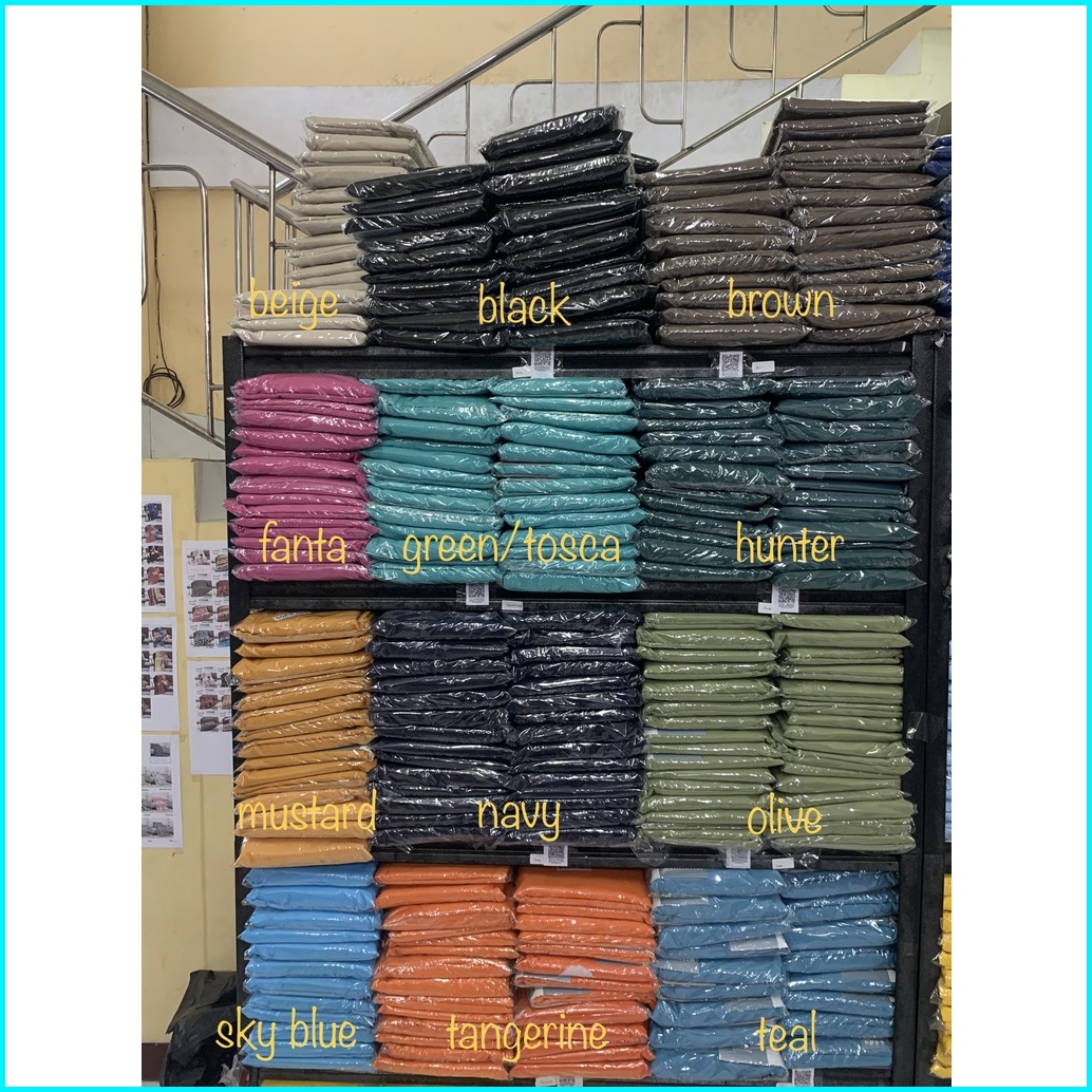Baby Pink, Cocoa, Coffee, Dark Grey, Dusty Lime, Green / Tosca, Hunter, Khaki, Lilac, Hazelnut Brown, Mint, Mocca, Mustard, Olive, Pastel Blue, Putih, Royal Blue, Sage Green, Silver, Belgian Brown, Sky Blue, Tangerine, Minion Yellow☀️, Salem Pink, Chestnut Brown, Dusty Cream, Marigold, Mango Sunshine, Pacific Blue, Peach, Space Navy, Emerald Green, Eternal Sage Green